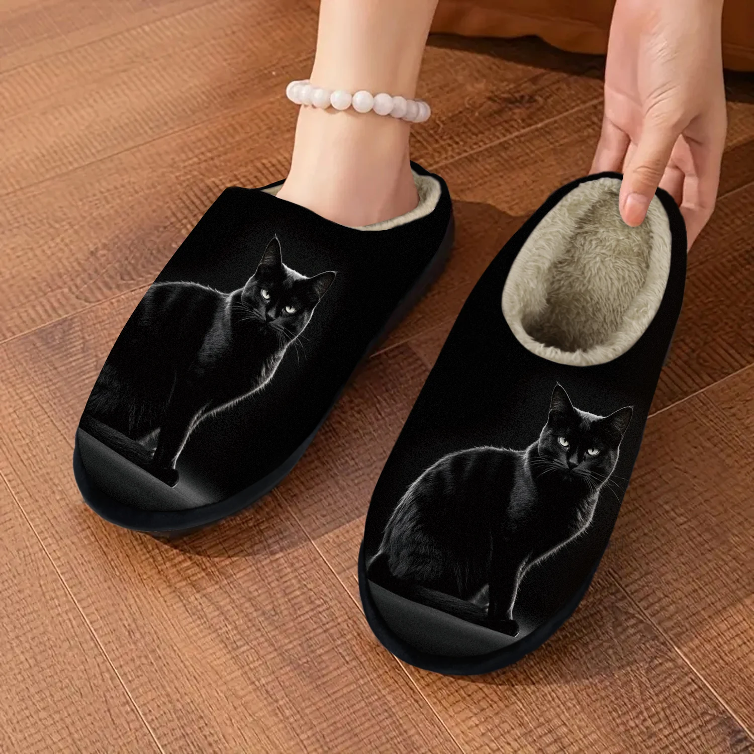Cat Lover's Cozy Flannel Slippers - Non-Slip, Animal Print House Shoes for All-Season Warmth, Casual Slipon Shoes
