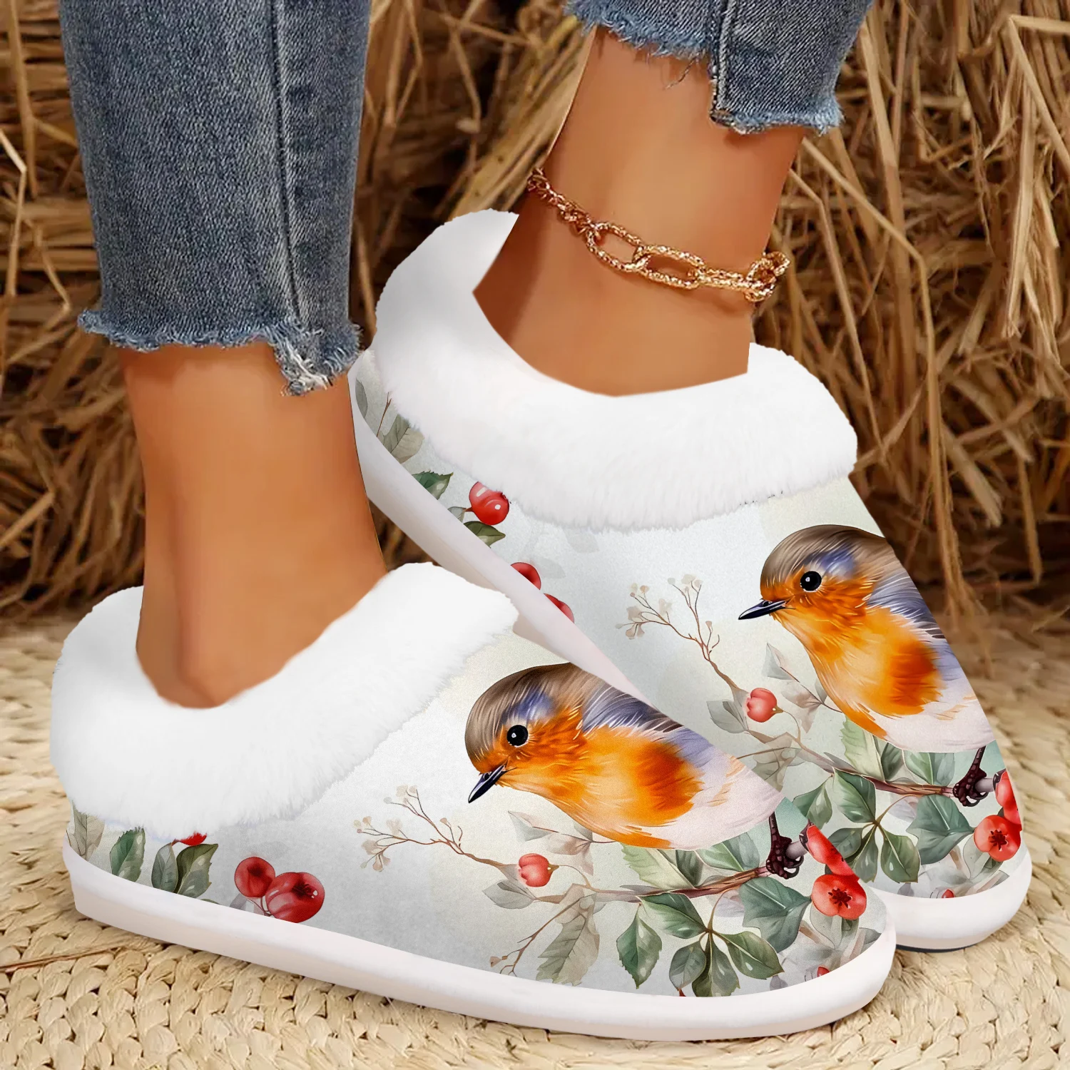 Women'S Cozy Slip-On Slippers with Vibrant Bird Design - Soft Fabric, All-Season Indoor/Outdoor Comfort