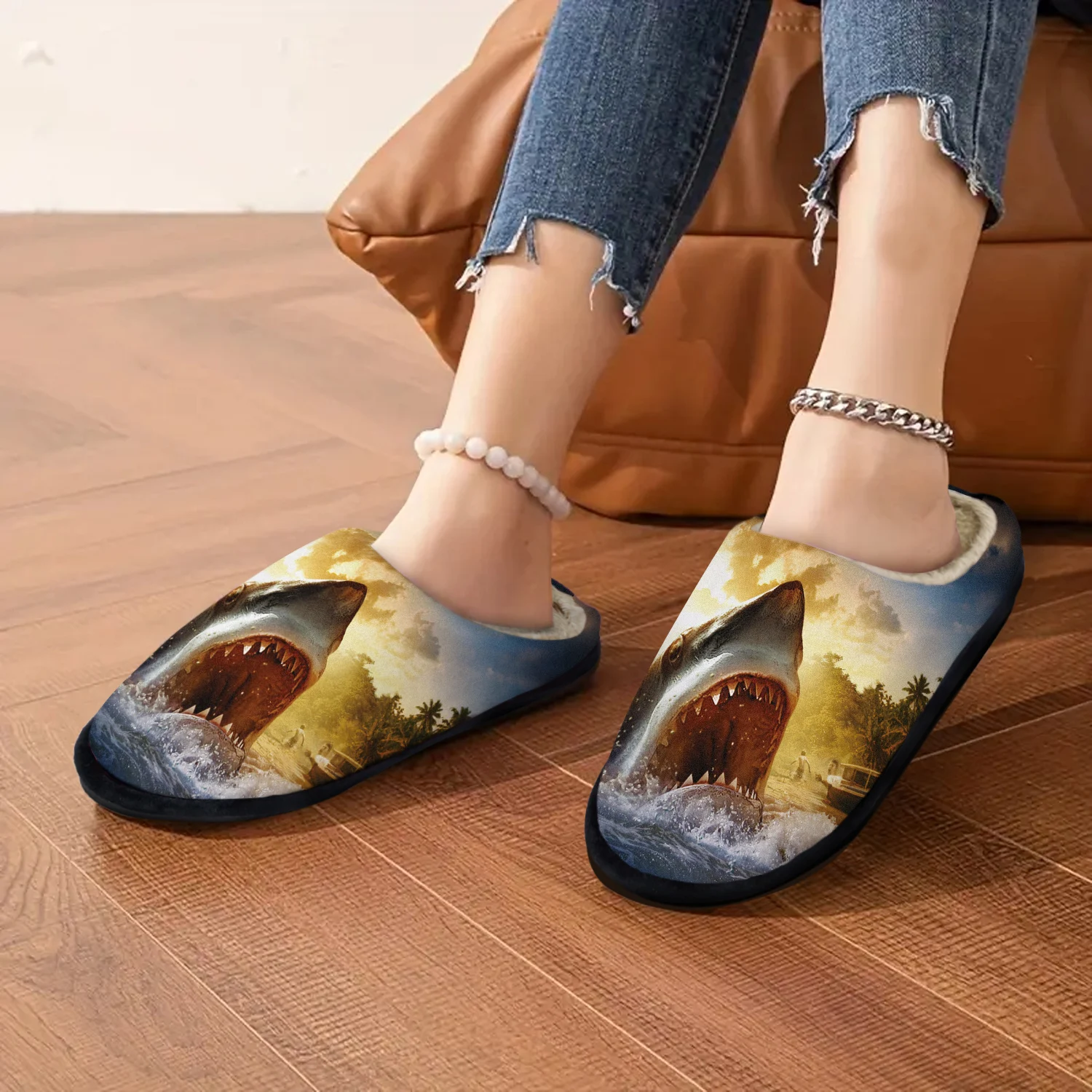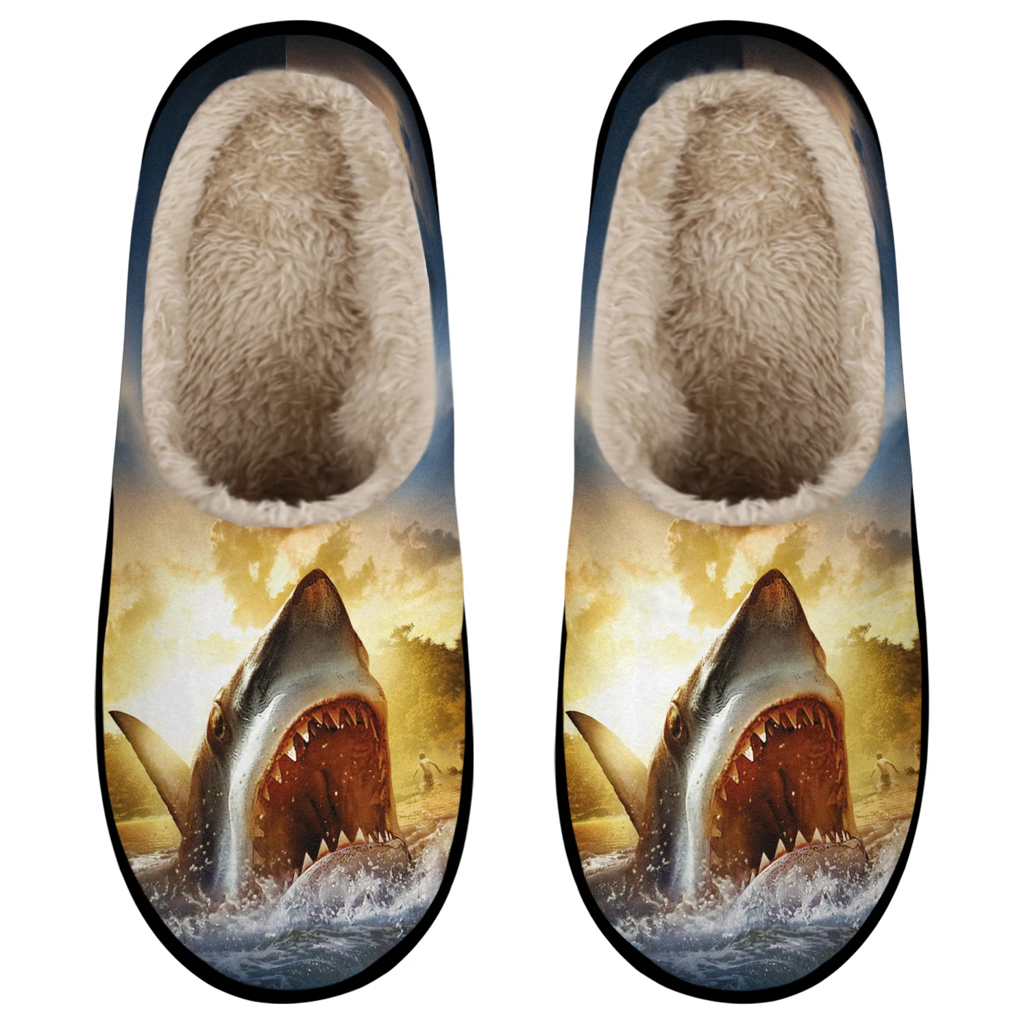 Women'S Shark Print Slip-On Slippers - Soft Fabric Upper & Rubber Sole, All-Season Indoor/Outdoor Comfort